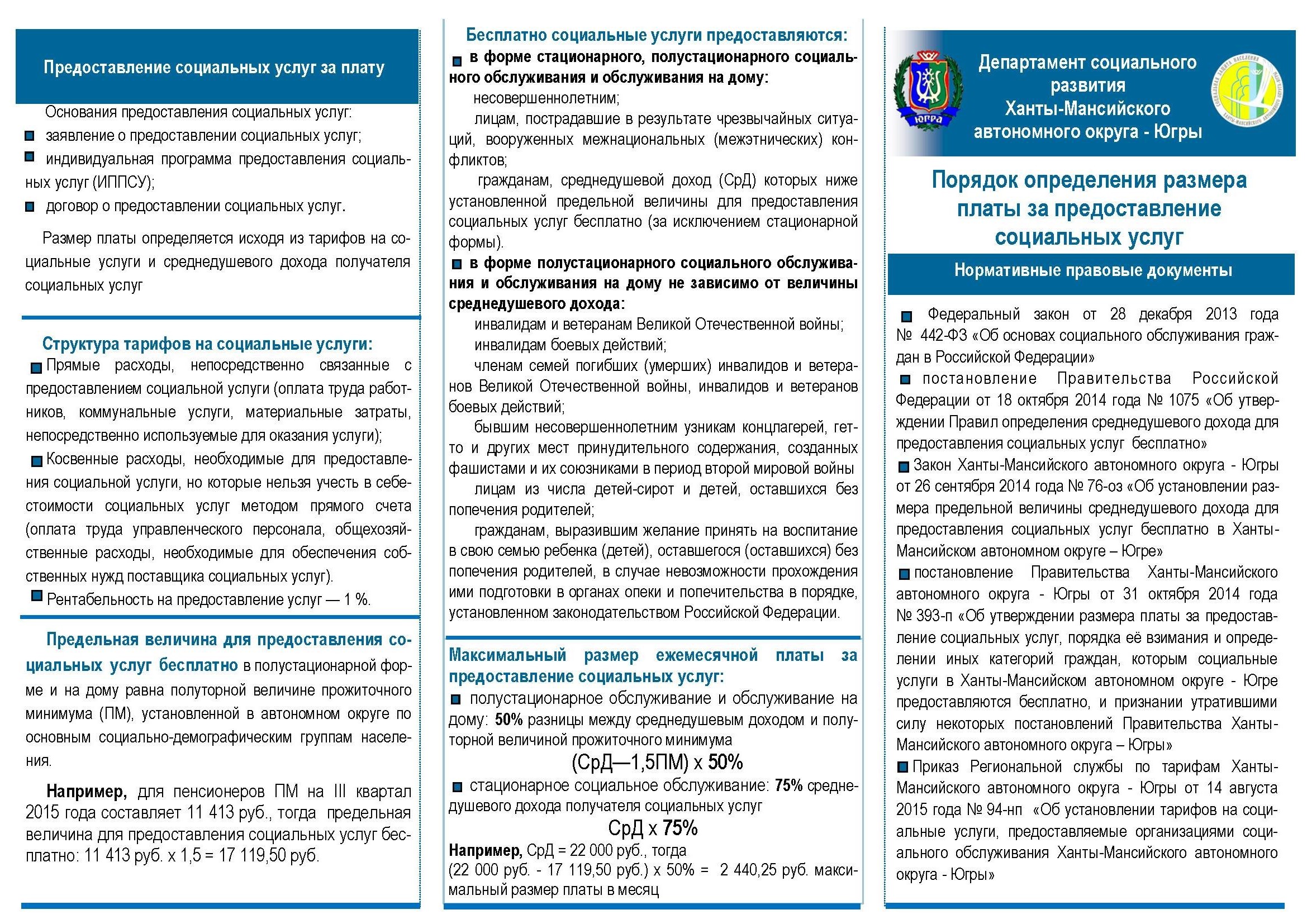 - предельной величины среднедушевого дохода для предоставления социальных услуг бесплатно в Ханты-Мансийском автономном округе - Югре (для получателей социальных услуг в форме социального обслуживания на дому, полустационарной форме социального обслуживания);